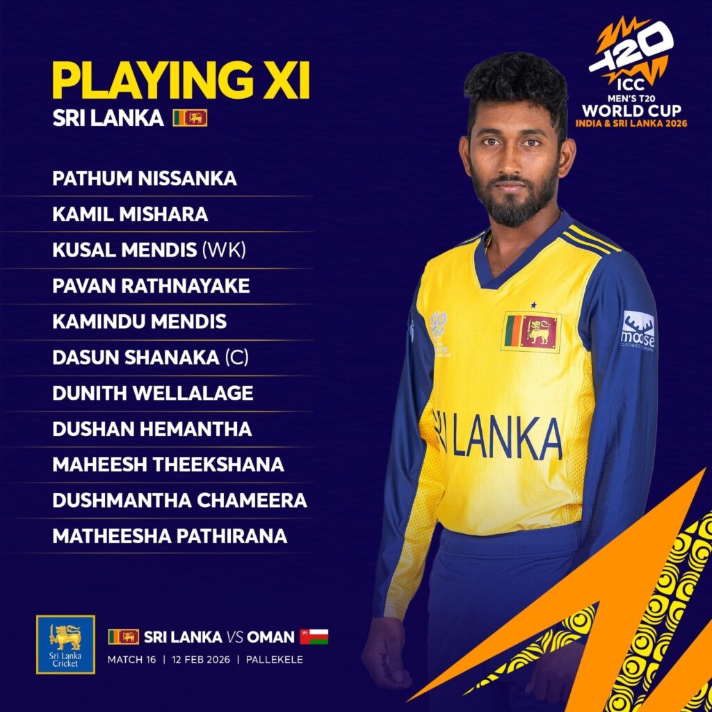 2026, විස්සයි විස්ස ලෝක කුසලාන තරගාවලියේ ශ්‍රී ලංකාව සහ ඕමානය අතර තරගයේ කාසියේ වාසිය දිනූ ඕමානය ප්‍රථමයෙන් පන්දුයැවීමට තීරණය කළේය.