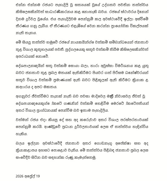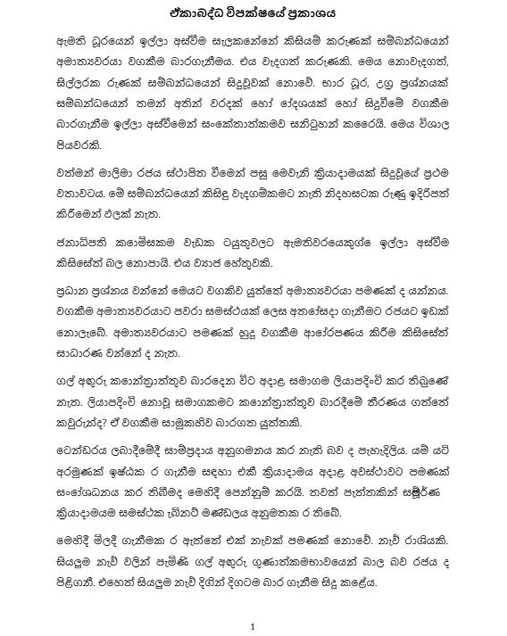 ඒකාබද්ධ විපක්ෂය විසින් නිකුත් කළ සම්පූර්ණ නිවේදනය පහතින්,