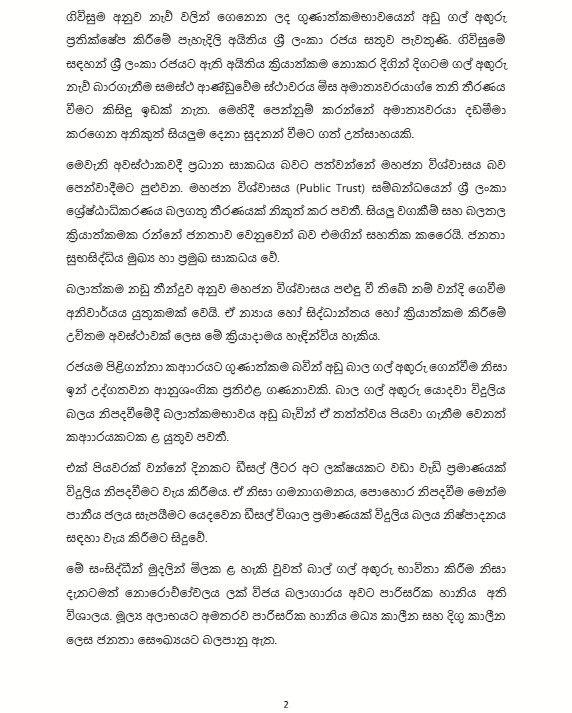 මෙම ගල්අඟුරු සම්බන්ධව කොන්ත්රාත්තුව ලබා දෙන විට අදාළ සමාගම ලියාපදිංචි කර නොතිබූ බවත් එවන් සමාගමකට කොන්ත්රාත්තුව භාර දීමේ තීරණයේ සාමුහික වගකීම බාරගත යුතු බවත් අදාළ ලිපිය මගින් දන්වා තිබේ.