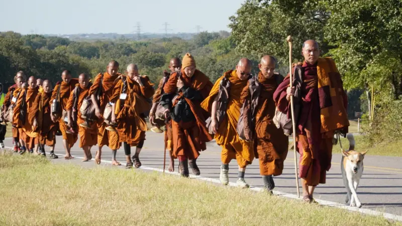 මෙම සාම පාගමනට එක්ව ලොව පුරා ආදරයට පත් ‘ආලෝකා’ (Aloka) සුනඛයා ද ඔවුහු සමග සිටියි.