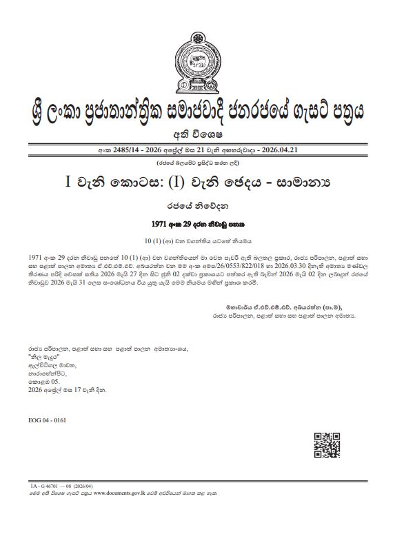 2026 රාජ්‍ය වෙසක් උත්සවය මැයි මස 30 වැනිදා පැවැත්වීමට රජය ගත් තීරණයට අනුව, රජයේ නිවාඩු දින සංශෝධනය කරමින් රාජ්‍ය පරිපාලන, පළාත් සභා සහ පළාත් පාලන අමාත්‍යාංශය විසින් අති විශේෂ ගැසට් නිවේදනයක් නිකුත් කර තිබේ.