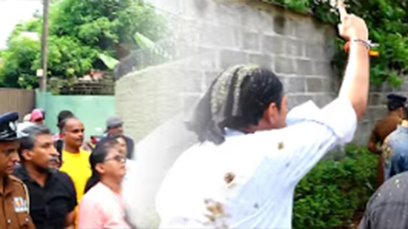 එහිදී නව ජනතා පෙරමුණේ පිරිස හර්ෂණ සූරියප්පෙරුම මහතාගේ නිවස අසල විරෝධය පළ කරමින් සිටියදී සුගීෂ්වර බණ්ඩාර ඇතුළු කිහිපදෙනෙකුට ගොම ප්රහාරයක් එල්ල කරන අයුරු අද දෙරණ කැමරාවේ මෙලෙස සටහන්ව ඇත.